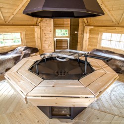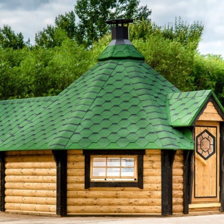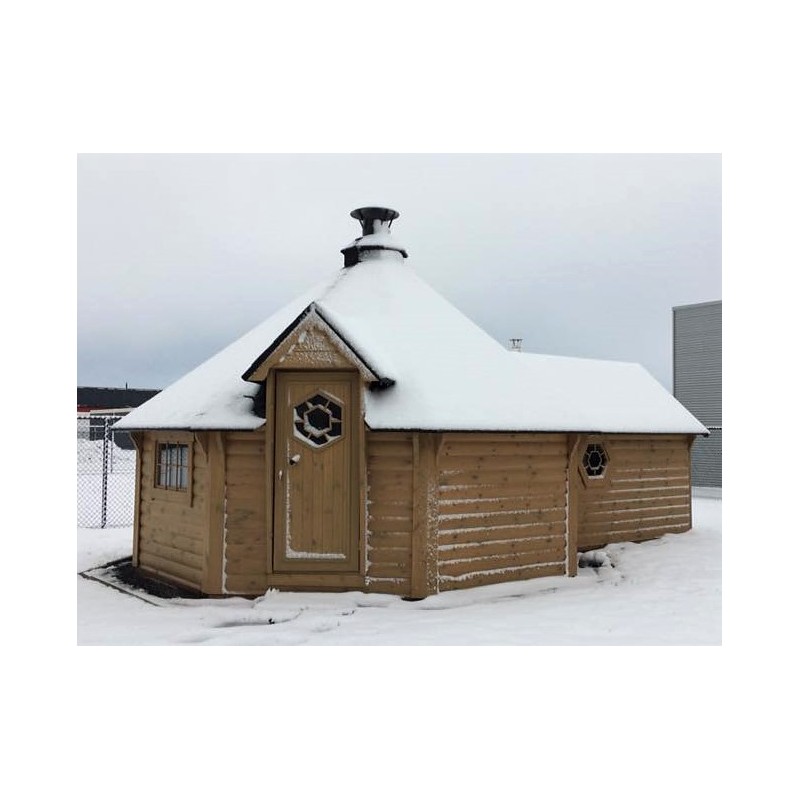 Ce Kota mixte Grill Sauna est dérivé d'un Kota grill de 16.5 m². Nous y avons ajouté une grande extension de 4.67 m², dans laquelle vous profiterez du confort d'un véritable sauna.