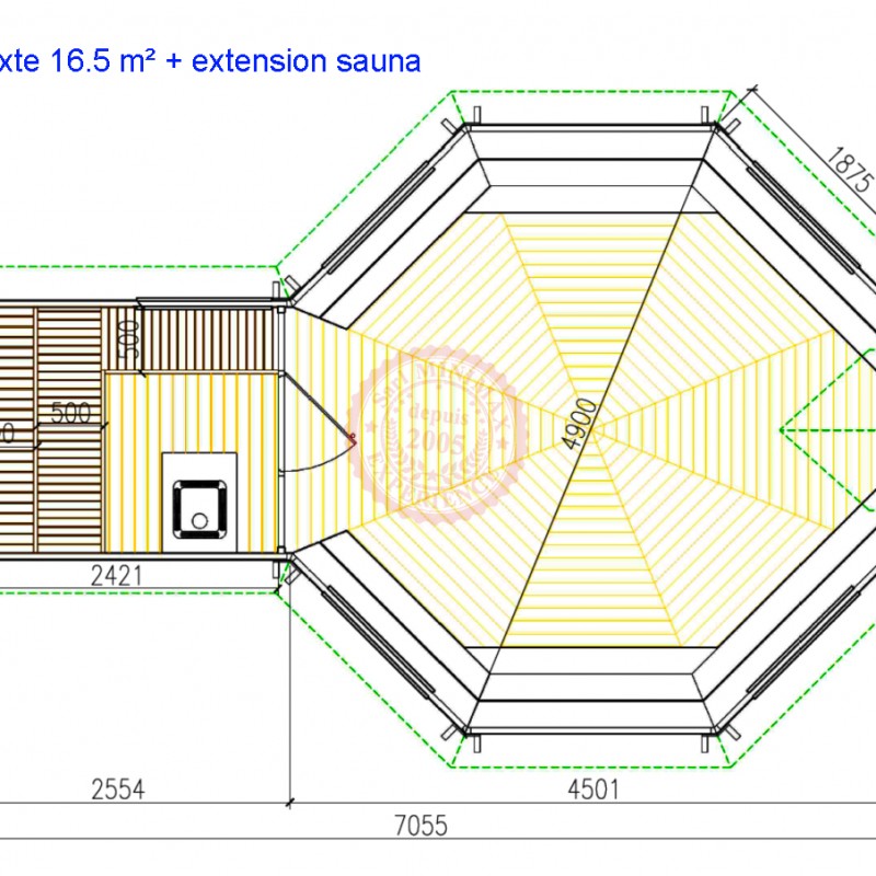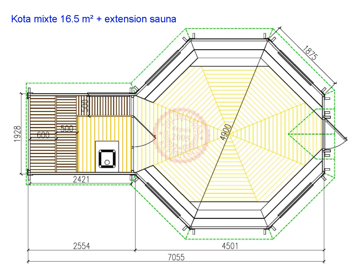 Structure du Kota : octogonale. Épaisseur des murs : 45 mm.