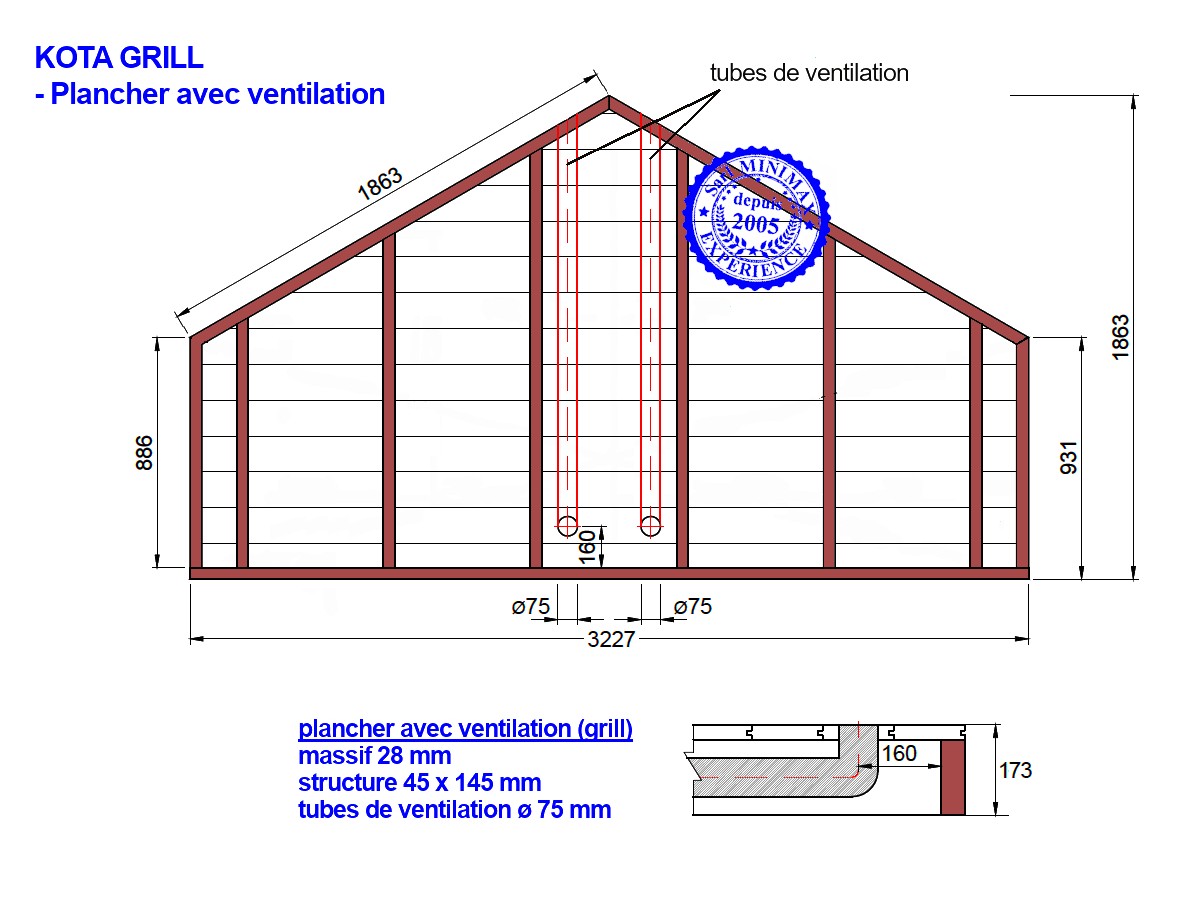 - les murs du kota sont fixés directement sur le pourtour de ce plancher